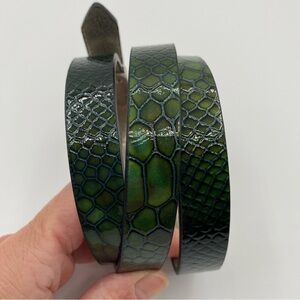 Coldwater Creek Leather Green Embossed Snake Print Belt with Nickel Buckle Sz S