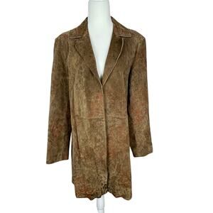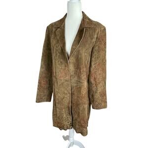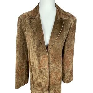 Coldwater Creek Leather Suede Long Line Jacket Open Front Floral Pattern Large