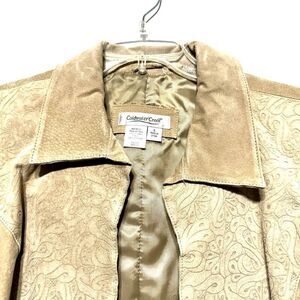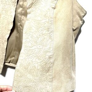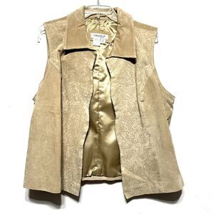 Coldwater Creek Leather Vest Open Front Tan Embossed Western Womens size Large