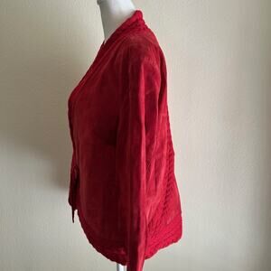 Coldwater Creek Leather/Suede Jacket Womens Red Tie Front SZM Cable Knit Button