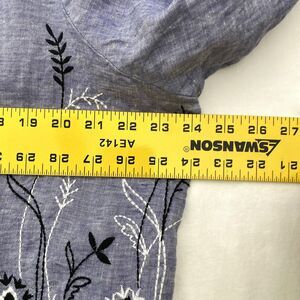 Coldwater Creek Jacket Womens Petite Large Blue Embroidered Linen Floral Pockets