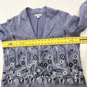 Coldwater Creek Linen Blazer Jacket Petite Large Embroidered Floral Pockets