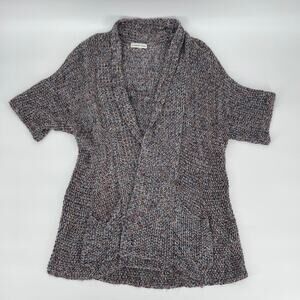 Coldwater Creek Linen Blend Cardigan Sweater Large Open Knit Short Sleeve Chunky