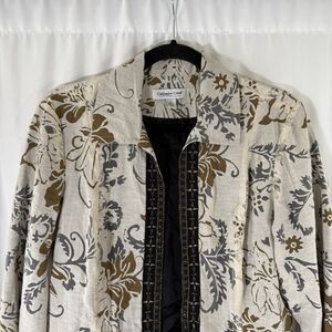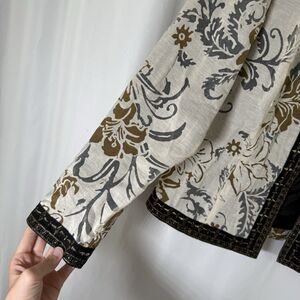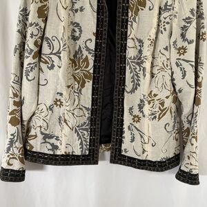 Coldwater Creek Linen Blend Jacket Women's Small White Floral Open Front Light