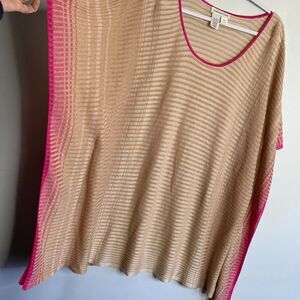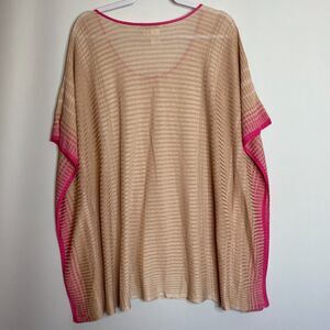 Coldwater Creek Linen Blend Kaftan Poncho Tan Pink Ombre Light Knit XL/1X