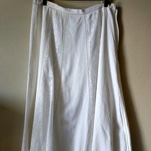 Coldwater Creek Linen Rayon Blend Lace Maxi Fare Skirt Zip White Sz.PL