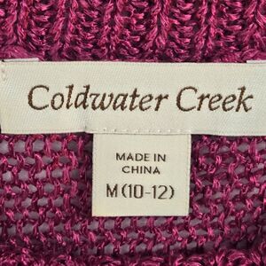 In great preowned condition. Bright Pink/Purple in color. No rips stains or tears. Measurements in photos are approximate. Embrace a blend of comfort and style with the Coldwater Creek Linen Blend Loose Knit Tunic Sweater. This piece, sized medium for a regular fit, is a wonderful addition to any wardrobe. Its open-knit construction allows for breathability while the dolman sleeves offer a relaxed fit. The boat neckline adds a touch of elegance to this casual and versatile top.Crafted from a soft mix of rayon and linen, this sweater features a solid pink hue that can easily be paired with a variety of bottoms. Whether you're heading to the beach or enjoying a city day out, it's suitable for various occasions. It's also a great choice for transitioning between seasons, making it a classic staple for year-round use. Hand wash care ensures longevity and sustained quality.
