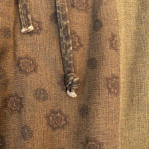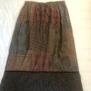 This long skirt is multicolored with a 17in stretchy waistband. It is made out of 100% Rayon and is 36 inches in length. This skirt is in great condition with no rips, tears or stains.