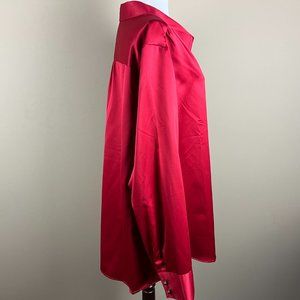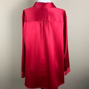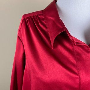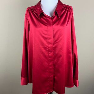 Coldwater Creek Long Sleeve Blouse Plus Size 3X (24) Deep Red, Hidden Button Down, Collar, Button Cuffs, Gathered at Shoulders, Sheen Finish