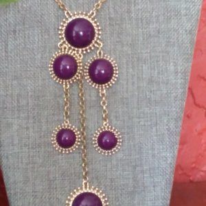 Coldwater Creek Long Statement Necklace Purple Dangle on Gold Tone