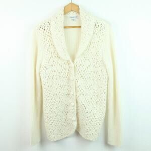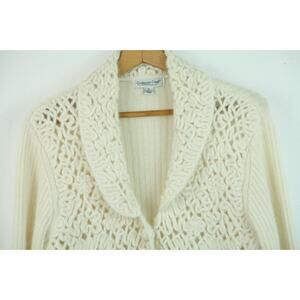 Coldwater Creek M Shawl Collar Cardigan Angora Cream Crochet Lace Cottagecore