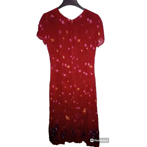 Coldwater Creek Maxi Dress Red Floral 100% Rayon Sheer Cap Sleeves Size 10