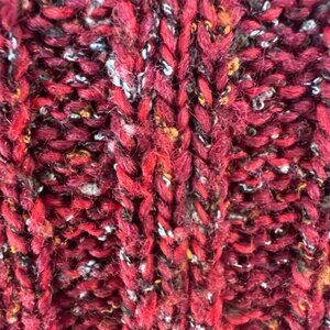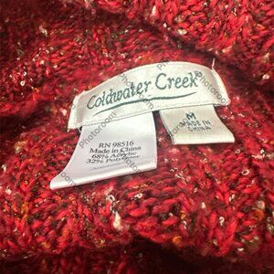 Wrap yourself in cozy comfort with this beautifully textured Coldwater Creek turtleneck. Made from a soft polyester and acrylic blend, this sweater features a rich red hue accented with subtle flecks of chocolate brown and white, giving it depth and dimension. The wide rib knit adds structure while keeping it soft and stretchy, perfect for layering or wearing on its own.