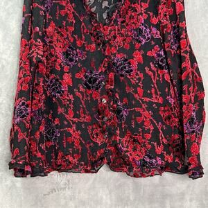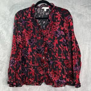 Coldwater Creek Mesh Crinkle Burnout Velvet Ruffle Button-Up Shirt Size PL