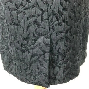 This very good condition black pencil skirt features a full lining, zipper back with button closure and a 5” slit in the back.