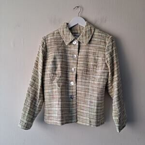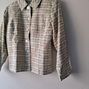 Coldwater Creek Womens Mint Green & BrownTweed Blazer Jacket with 5 Mother of Pearl Buttons - Size 8 (NWT)