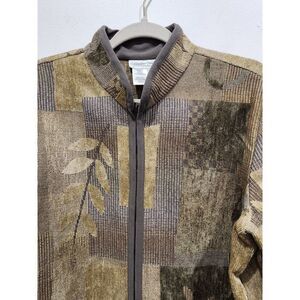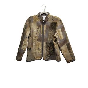 Coldwater Creek Mixed Media Chenille Tapestry Mandarin Collar Zip Front Jacket L