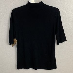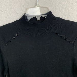 Coldwater Creek Mock Neck S/S Black Top w/ bead/faux button detail on chest area under both shoulders- M
