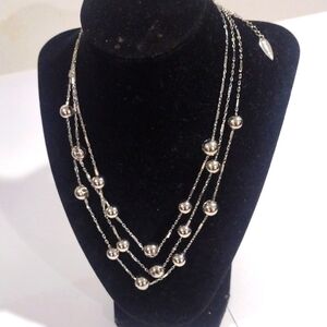 Coldwater Creek Multi-Strand Necklace – Silver Elegant Layered Beads Jewelry 18"