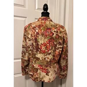 Chic jacket with a vibrant floral pattern. Features a classic button-up design. Ideal for a stylish look.