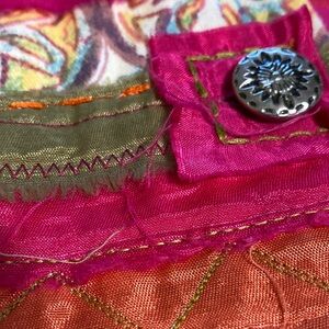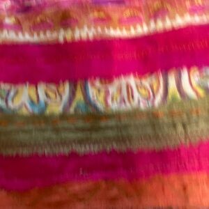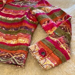 Vibrant striped blazer with button closure. Features a mix of colors for a bold look. Perfect for adding flair to any outfit. Has a tattered stitch look the cuffs unbutton if you like to roll your sleeves. This is a definite statement jacket