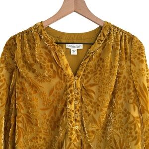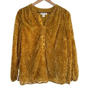 Coldwater Creek Mustard Yellow Velvet Burnout Blouse