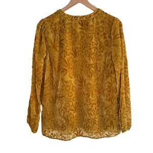 Coldwater Creek Mustard Yellow Velvet Burnout Blouse Size Small Floral Boho