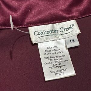Coldwater Creek NWOT Red Velvet Satin Blazer Jacket 14 Dark Romantic Festive
