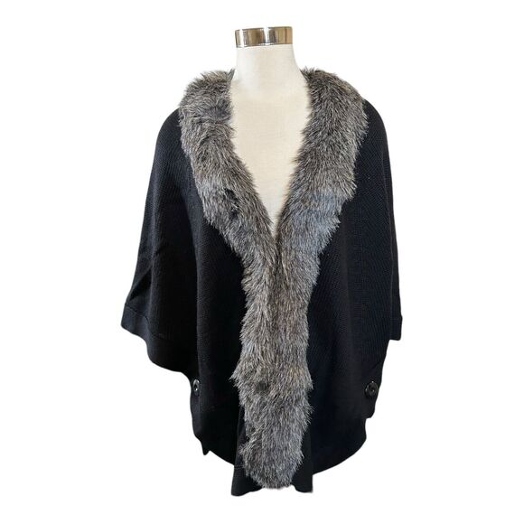 Coldwater Creek NWT Acrylic Wool Faux Fur Trim Cape Poncho Sweater Sz XL/1X