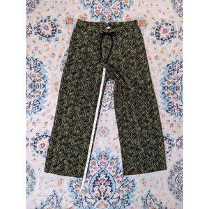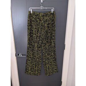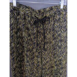 Easy, lightweight style for any day of the week, spiced with a black and yellow print. Pull-on style is smooth and drapey with an elastic drawstring waist. In excellent condition