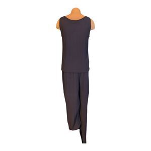 This lightweight Coldwater Creek Navy 3 Pc Suit is a vintage-inspired women's outfit in size P6. This stylish set includes an embroidered jacket with a collarless design and short sleeves, paired with a pair of formal pants featuring an elastic waist and a 27.5" inseam. The set is perfect for various occasions such as parties, business meetings, or formal events during the summer, fall, and spring seasons. Made of crepe fabric and rayon material, this designer suit exudes a classic and elegant look that is ideal for those looking for a sophisticated outfit with a touch of glamour.