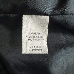 This jacket features a solid navy color and is made of lightweight polyester material that has a suede like feel, without the weight. Button closures add a touch formality/realism to this military style jacket.