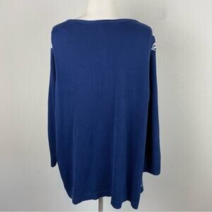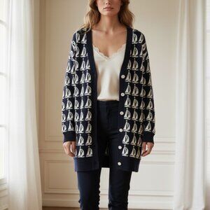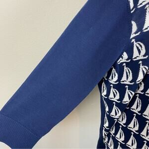 Coldwater Creek Navy White Nautical Sailboat 8 Button Cotton Cardigan 2X