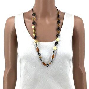 This Coldwater Creek Necklace exhibits a sophisticated antique gold tone design. Its cream golden beads, strung along a generous 32-inch length, add elegance and versatility to any outfit.