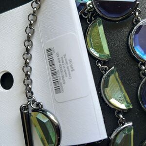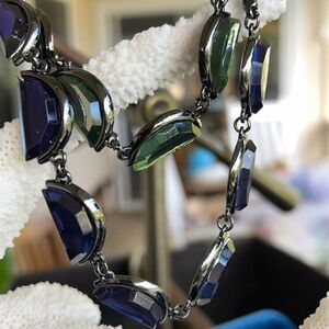 Coldwater Creek Necklace Crescent Gem Necklace Blue Amber Gun Metal Gray
