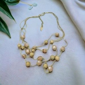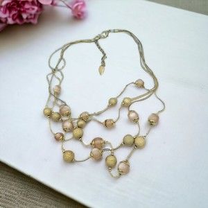Coldwater Creek Necklace Station Glass & Goldtone Bead Layered Statement 20"Coldwater Creek Necklace Station Glass & Goldtone Bead Layered Statement 20". Glass beads are a moonstone taupe. In good pre-owned condition.
