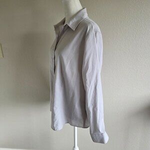 Coldwater Creek No Iron Blouse Button Up Shirt Silver Gray Size Petite L - PL