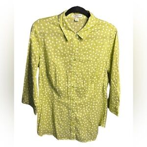 Coldwater Creek No Iron Button Front Polka Dot Shirt Size: XL/16