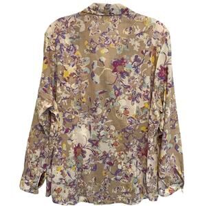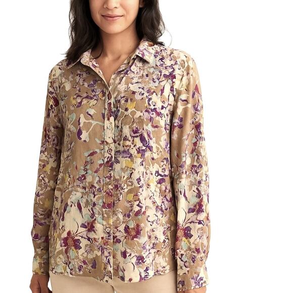 Coldwater Creek No Iron Button Top Womens Size 2X Tan Watercolor Floral Shirt