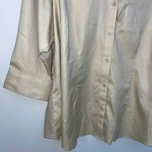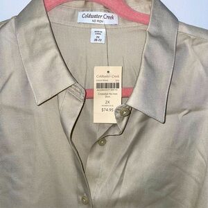 Coldwater Creek No Iron Button Up Blouse 3/4 Sleeve 2X Crossdye NWT Sand