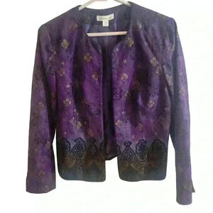 Coldwater Creek Open Front Jacket Blazer Womens Size 6 Purple Festival Design