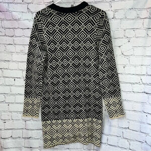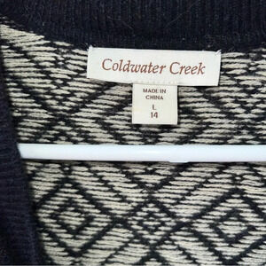Coldwater Creek Open Front Wool Blend Black Beige Geometric Long Sweater Large