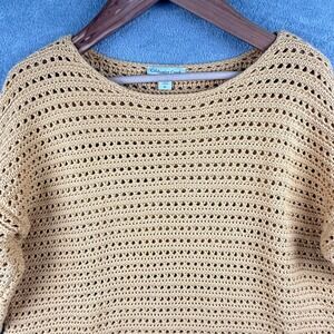 Keywords: Coldwater Creek, Womens sweater, Open knit, Cropped sweater, 3/4 sleeve sweater, Pullover top, Yellow sweater, XL sweater, Cotton blend, Casual sweater, Boho sweater, Summer sweater, Lightweight sweater