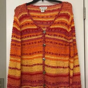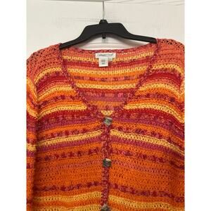 Coldwater Creek Open Knit Vibrant Striped Button Front Sweater Beachy Summer Lrg
