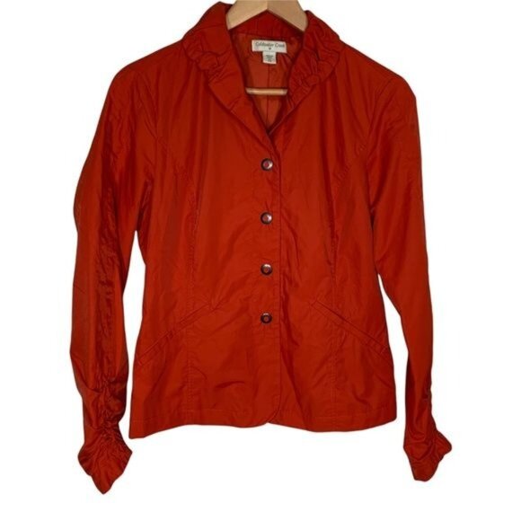 Coldwater Creek Orange Button Front Jacket XS Ruched Sleeve Fall Coat