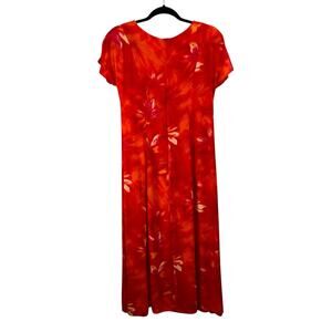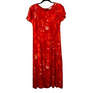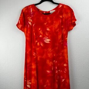 Coldwater Creek Orange Tropical Floral Short Sleeve Summer Midi Shift Dress 10P