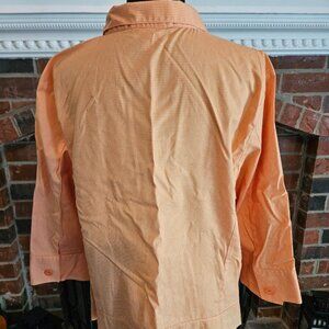 Coldwater Creek Orange & White Checked Top with 3/4 Sleeves. Tapered Waist. PXL
