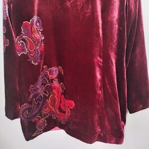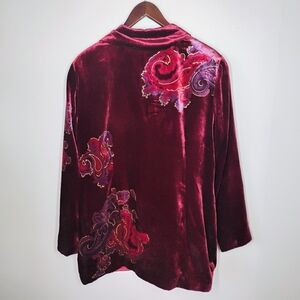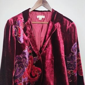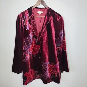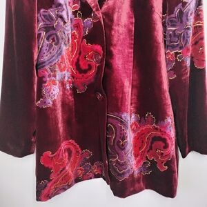 Coldwater Creek Paisley Velvet Blazer Burgundy Art To Wear Bohemian Womens 16