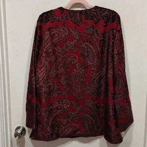 Elevate your style with this stunning Coldwater Creek jacket. The paisley pattern and velvet fabric create a luxurious and elegant look, perfect for any event. The long sleeves and one-button closure add a touch of sophistication to this basic jacket.