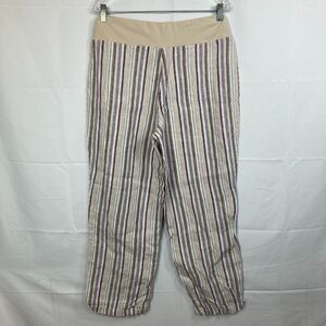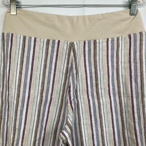 Coldwater Creek Pants Womens Sz 12P Beige Stripe 100% Linen Pull On Straight Leg